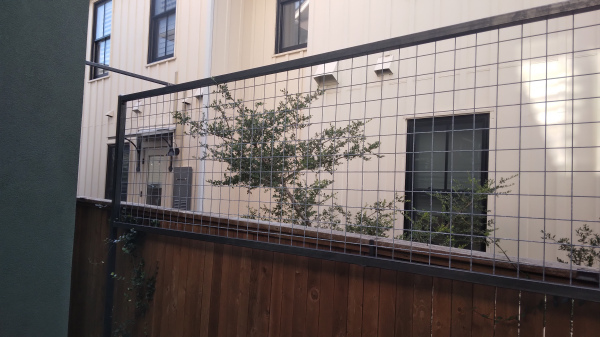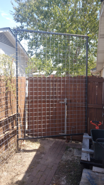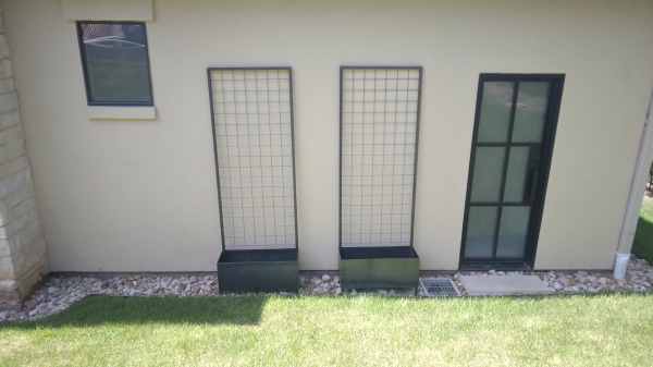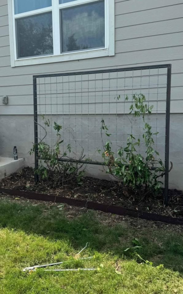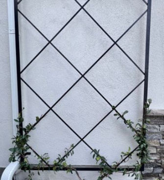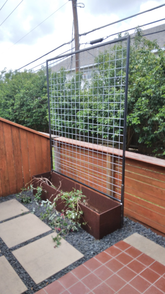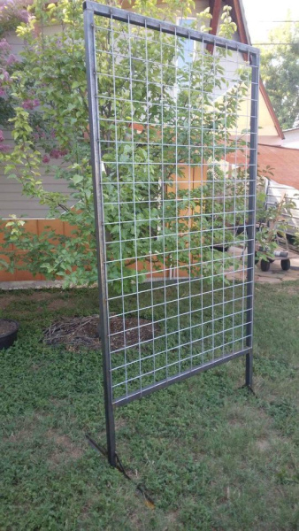 Heavy duty steel tube framed trellis with thick wire grid. These will easily support your heaviest vines for many years. The raw steel frame will develop a rustic patina, and the grid is galvanised, so it will remain gray. There is an option for a rustic grid. Starting at $250 for a 3x6ft, we can build any custom size. Typical are 4ft wide, 6 to 8ft tall. The posts can be set in the ground/concrete, or the trellis can be built with 'feet' to stand on top of the ground. Or it can be attached to a heavy planter.
